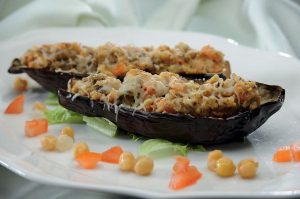 Smjesom napunite patlidžane. Vratite ponovo u pećnicu na 8 minuta. Svježe naribani sir pospite po patlidžanima te ponovo pecite dok se sir ne istopi.