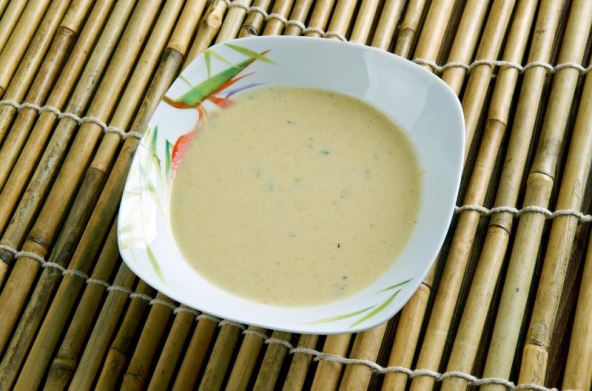 U blender stavite tofu, po 3 žlice limunova soka i povrtnog temeljca, po 2 žličice senfa i nektara od agave, oljušten i krupno narezan češnjak te, ako povrtni temeljac nije slan, prstohvat soli. Smiksajte pa kušajte i provjerite gustoću te po potrebi i svom ukusu dodajte još limunova soka i temeljca, odnosno senfa i nektara od agave, kao i mljevenoga bijelog papra.