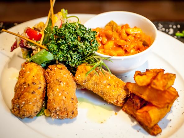Sojine medaljone staviti u vrelu vodu i tako kuhati još 5 min. Ugasiti i pustiti ih da se hlade da njima možete rukovati. Iz medaljona istisnuti svu vodu i lagano potući kuharskim čekićem da možete zamotati tofu. Tofu nabosti na štapić ražnjića i zamotati u rastučen sojin medaljon, zatim sve zajedno umočiti u brašno, jaja i mješavinu graham krušnih mrvica, miješanih sjemenki, mljevenog cornflakesa i tako ispržiti u dubokom ulju. Kada dobiju zlatno žutu boju izvaditi, staviti na papirnati ubrus i tako servirati.