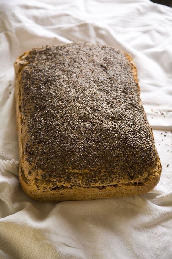 Umijesite sastojke, pustite da se tijesto diže i dva puta premijesite. (Tajna dobrog kruha je u čekanju. Ako se kruh radi s kvasom, treba dulje čekati da se tijesto digne, može se čak ostaviti preko noći pa peći ujutro.) Istresite tijesto u lim obložen papirom za pečenje, premažite ga slanom vodom i gusto pospite lanenim sjemenkama; malo ih utisnite prstima. Pecite oko jedan sat na 180-200 stupnjeva.