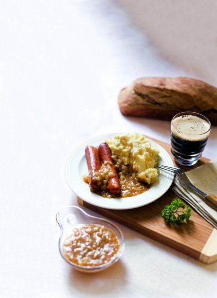 Na ulju pirjajte luk dok ne postane staklast. Dodajte sol i promiješajte, a zatim dodajte smeđi šećer. Pirjajte na laganoj vatri minutu-dvije uz miješanje. Pazite da luk ne posmeđi. U luk dodajte crno brašno i nastavite miješati 2 minute. Ulijte pivo i vodu, odnosno temeljac. Kad se umak zgusne, dodajte umeboshi i rižin ocat.