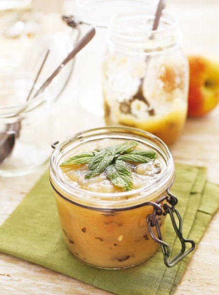 Jabuke očistite, ogulite, narežite na ploške i stavite u posudu za kuhanje. Prelijte ih s 1 dl vode i limunovim sokom pa kuhajte na srednjoj vatri. U međuvremenu karamelizirajte ¼ šećera s 0,5 dl vode. Karamelizirani šećer ulijte u jabuke pa dodajte ostatak šećera. Kad smjesa postane poprilično gusta, dodajte listiće mente i đumbir narezan na tanke štapiće. Pekmez izlijte u sterilizirane i zagrijane teglice i ostavite u mlakoj pećnici s malo otvorenim vratima da se ohladi i uhvati zaštitna korica. Ohlađeni pekmez pospite žlicom kristal šećera, zatvorite celofanom i stavite poklopac.