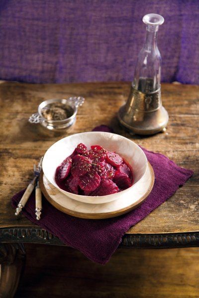 U vodi koja je prekriva kuhajte ciklu otprilike 1 sat ili dok ne omekša. Kad voda zakuha, dodajte sol. Kuhanu ciklu ostavite da se kratko ohladi kako biste mogli oguliti koru i narezati je na ploške. U posebnoj posudi na suncokretovom ulju ugrijte sok od rajčice i dodajte ciklu pa otklopljeno kuhajte 10-ak minuta. U međuvremenu na maslinovom ulju prepržite sjemenke kima i kajenski papar. Ohlađenoj cikli u umaku od rajčice dodajte kim i kajenski papar u ulju, umeboshi i jabučni ocat. Dobro promiješajte!