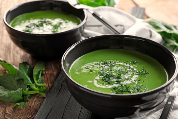 Nastavite kuhati dok lagano ne zakipi. Za to vrijeme očistite špinat pa ga dodajte u juhu i kuhajte dok ne uvene, oko 30 sekundi. U zdjelici razmutite jaja s umakom od soje i malo papra (ili kajenskog papra). Dok juhu miješate drvenom kuhačom širokim pokretima, polako ulijte razmućena jaja.
