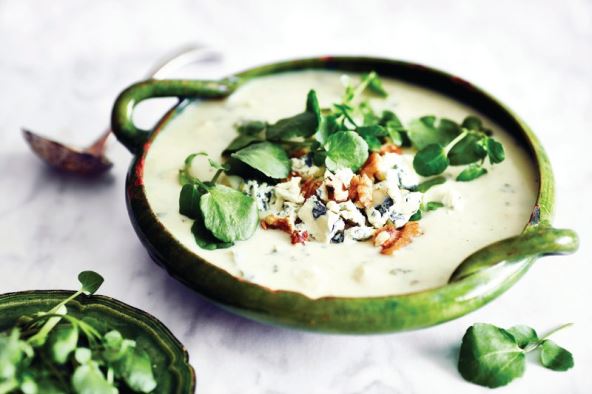 Pastrnjak očistite, a jabuku ogulite pa oboje narežite na kockice. Poriluk dobro operite i narežite na tanke kolutiće. U loncu zagrijte ulje pa na njemu 5 minuta pirjajte poriluk. Dodajte pastrnjak i jabuku, pospite ih začinima pa pirjajte još 5 minuta. Ulijte litru tople vode, blago posolite i kuhajte dok lagano ne zakipi, a potom smanjite vatru, poklopite i kuhajte još 20 minuta. Maknite s vatre i smiksajte štapnim mikserom. Ulijte vrhnje te dodajte soli i papra prema ukusu. Nakratko vratite na vatru da se juha ponovo zagrije. Ulijte u zdjelice pa u svaku stavite malo smrvljenog sira s plemenitom plijesni i pospite nasjeckanim orasima te listićima potočarke.