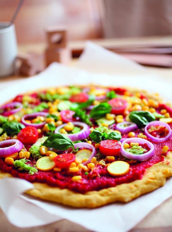 Zagrijte pećnicu na 190°C. Nauljite pliticu za pečenje pizze. Tijesto za pizzu podijelite napola, razvaljajte polovicu u veliki krug pa stavite u pliticu za pečenje. Izbodite cijelu površinu tijesta vilicom i pecite 5 minuta. Izvadite iz pećnice pa stavite umak i odabrano povrće, razmrvljeni tofu, gljive, vegetarijanske kobasice, masline... Vratite u pećnicu na 10-ak minuta pa narežite i poslužite.