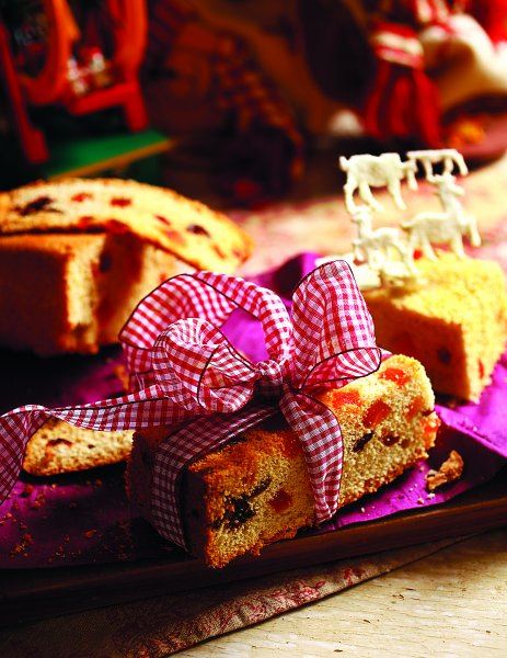 Mikserom dobro razmutite šećer i 3 žumanjka, dodajte toplo mlijeko i kad se sve razradi, umiješajte brašno. U zasebnoj zdjeli mikserom istucite bjelanjke u čvrsti snijeg. Snijeg od bjelanjaka lagano umiješajte u smjesu pa na kraju dodajte suho voće i orašaste plodove. Smjesu ulijte u maslacem namašćen kalup (otprilike 25 x 11 cm, ali možete je rasporediti i u manje kalupe). Pecite 30-ak minuta u pećnici zagrijanoj na 180°C. Tijesto je pečeno kad dobije zlatnu boju.