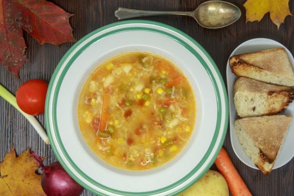 Juhu ukrasite korijandrom i poslužite je s pečenim pecivom.