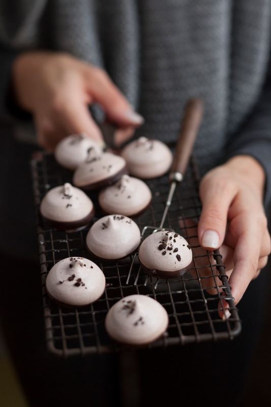 Po vrhu svakoga macaroona oprezno posipajte komadiće kakaa i ostavite ih da odstoje 10 minuta.