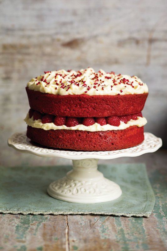 Za kremu izmiješajte u blenderu maslac i pola količine šećera u prahu. Dodajte vaniliju i ostatak šećera pa nastavite miksati još nekoliko minuta. Na kraju dodajte sirni namaz i kratko promiješajte, samo da se sastojci spoje. Na stalak za tortu stavite prvi sloj biskvita, premažite ga polovicom kreme pa dodajte maline. Poklopite drugim biskvitom i premažite ga ostatkom kreme i pospite komadićima osušenih malina.