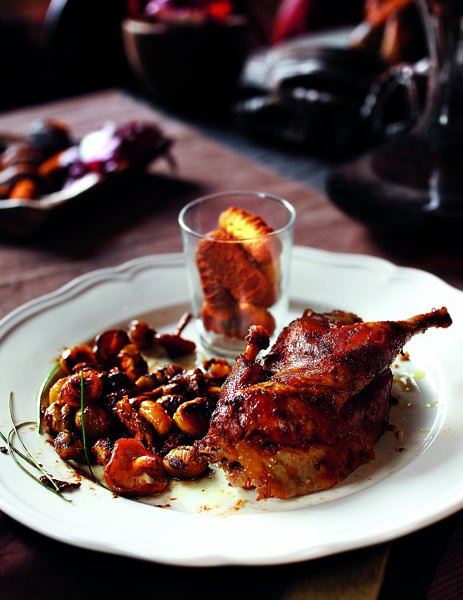 Dan prije fazane natrljajte solju i stavite u hladnjak. Sutradan ih ispržite na ulju sa svih strana da dobiju boju. Izvadite ih pa na ulje na kojem su se pržili dodajte aromatizirani maslac. Kad se maslac zagrije, propirjajte gjive, a zatim dodajte 15 nasjeckanih kestena, malo vlasca, češnjak i vrhnje za kuhanje. Pirjajte 10-ak minuta. Ohlađenom smjesom napunite fazane i stavite ih u lonac, zalijte vinjakom pa nakon nekoliko minuta dodajte ½ l temeljca. Poklopite i pirjajte 45 minuta. Pri kraju dodajte ostatak kestena pa ostavite da lagano kuha 15-ak minuta. Gotove fazane razrežite i poslužite s nadjevom prelivenim umakom od pirjanja.