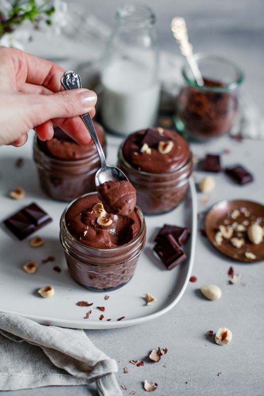 Ako su datulje koje koristite tvrde, narežite ih i namačite u vodi dok ne omekšaju. Zatim stavite u blender mlijeko, lješnjake i datulje te izblendajte. Dodajte sve ostale sastojke i blendajte dok ne dobijete glatku kremicu. Stavite u teglice i ohladite u hladnjaku. Može stajati 2 - 3 dana.