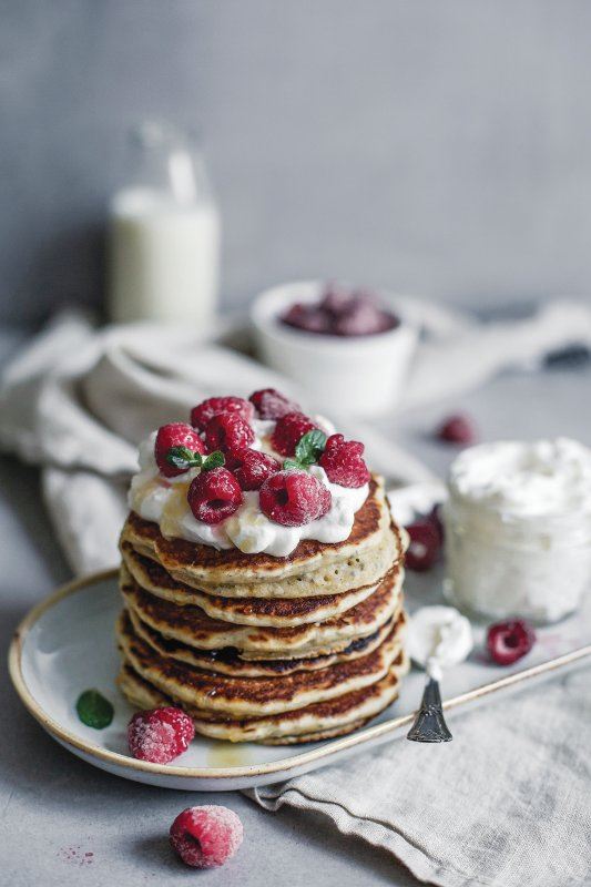 Pomiješajte suhe sastojke - brašno, prašak za pecivo, sol i chia sjemenke. Zatim dodajte tekuće - ulje, sirup, vodu i mlijeko. Pažljivo promiješajte. Smjesa ne mora biti skroz glatka, bolje je da ostane poneka grudica u smjesi nego da je predugo miješate pa dobijete žilave palačinke. Ostavite smjesu da kratko odstoji. Pecite palačinke na dobro zagrijanoj tavi na kokosovom ulju. Ja koristim 2 - 3 žlice smjese za jednu palačinku.