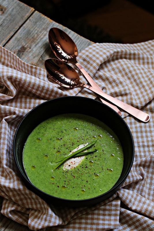 Koprivu natrgajte na sitnije (koristite rukavice), a medvjeđi luk narežite na trakice pa sve zajedno dodajte u posudu s krumpirom i nastavite kuhati još 2-3 minute. Nakon toga skinite s vatre i izradite štapnim mikserom. Ako je juha pregusta, dodajte malo vruće vode te po potrebi malo soli i papra.