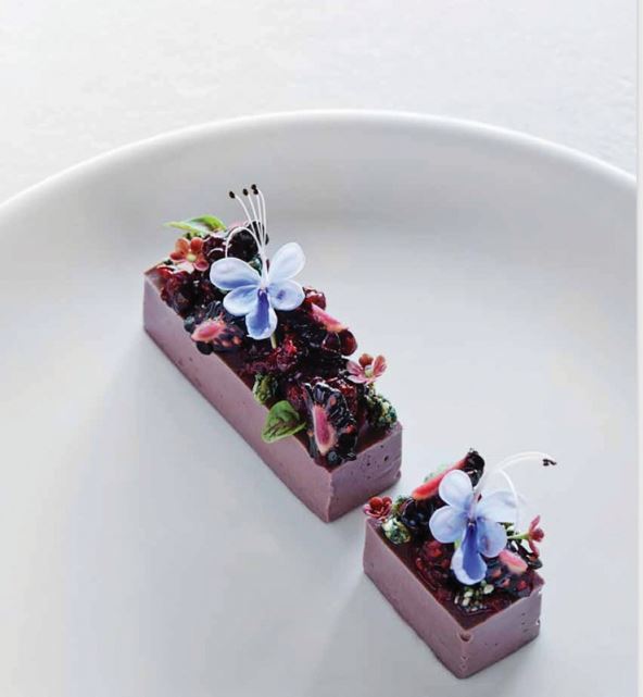 Ako ste panna cottu izlili u kalupe, izvadite je na tanjur, a onu iz posude narežite na željenu veličinu te je pospite mrvicama smjese sa spirulinom i fermentiranim kupinama. Prema želji, ukrasite jestivim cvijećem.