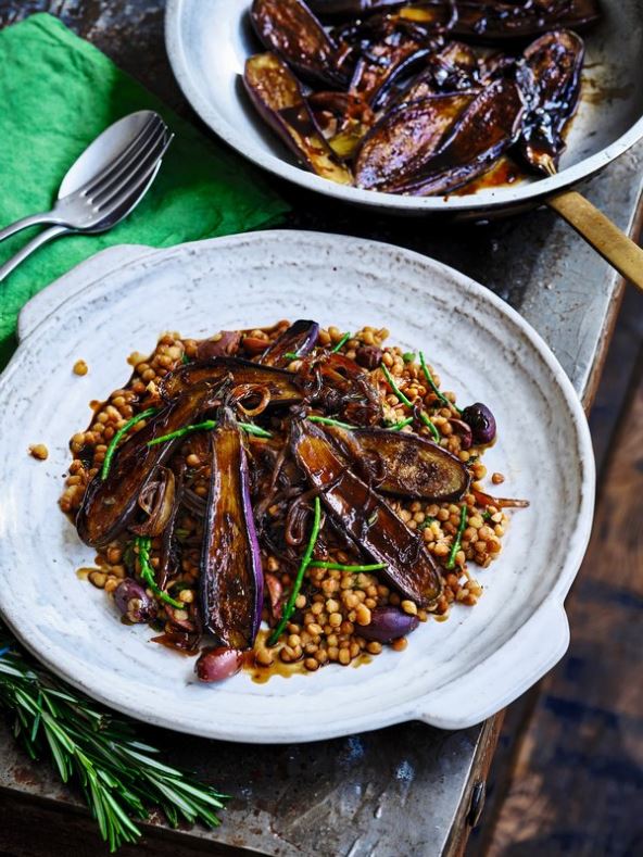 Kad patlidžani budu glazirani, poslužite ih s lećom i po želji s parenim motarom ili divljim šparogama.