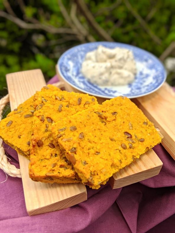 Pomiješajte sve suhe sastojke te dodajte sojin jogurt i maslinovo ulje. Smjesu rasporedite u protvan na papir za pečenje i pecite na 180 stupnjeva oko 20 minuta, odnosno dok ne porumeni.