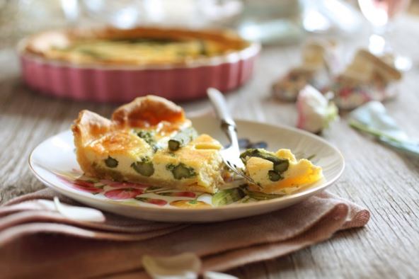Za tijesto pomiješajte brašno i omekšali maslac dok ne dobijete grudičastu smjesu. Dodajte jaje, kiselo vrhnje, šećer i sol pa umijesite tijesto. Kad izradite tijesto, stavite ga na tanjur, prekrijte plastičnom folijom i ostavite u hladnjaku 30-ak minuta. Šparoge očistite i nekoliko minuta prokuhajte u posoljenoj vodi. Procijedite ih te polovinu sitnije nasjeckajte.
