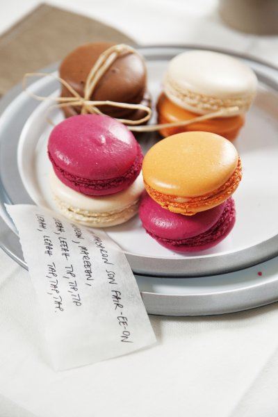 Zagrijte pećnicu na 180ºC. Pomiješajte šećer u prahu s mljevenim bademima i kakaom za kolače. U posudi izmiksajte bjelanjke i šećer dok smjesa ne postane tvrda, za što će vam trebati dvije-tri minute. Pažljivo umiješajte suhe sastojke i miješajte dok ne nestanu tragovi bjelanjka. Smjesu stavite u vrećicu za pravljenje malih kolača (izgleda kao tuljac za kestene, samo je plastična). Površinu na kojoj ćete peći kolačiće prekrijte papirom za pečenje. U pravilnim razmacima (od oko 3 cm) istiskujte male krugove promjera 2,5 cm uz pomoć plastične šprice. Pecite ih 15-18 minuta. Kad su gotovi, izvadite ih iz pećnice i pustite da se ohlade.