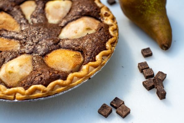 Za ovu slasnu pitu najbolje su zrele, sočne kruške. Ako su kruške još tvrde, oguljene i očišćene polovice prokuhajte 5 minuta na laganoj vatri u vodi kojoj ste dodali malo limunova soka.
