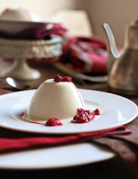 Na pari lagano zagrijte slatko vrhnje i umiješajte šećer. Kad se šećer otopi, sklonite posudu s pare i dodajte ekstrakt vanilije. Listiće želatine namočite u hladnu vodu i ostavite da odstoje. Kad se napuhnu, procijedite ih i umiješajte u toplu mješavinu slatkog vrhnja. Dobro promiješajte mikserom dok se želatina ne otopi. Panna cottu ulijte u nekoliko manjih ili jednu veću posudu. Ostavite u hladnjaku nekoliko sati prije posluživanja.