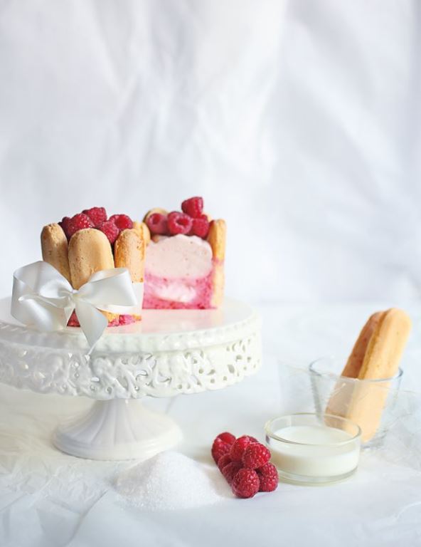 Maline zgnječite u pire pa ih zajedno sa šećerom malo zagrijte. List želatine namačite u hladnoj vodi dok se ne napuhne. Kad pire od malina postane topao, dodajte list želatine i dobro promiješajte. Ostavite pire da se ohladi. Istucite slatko vrhnje u šlag pa u njega umiješajte ohlađeni pire od malina. U manji kalup za torte (promjera otprilike 10 cm) uspravno poslažite piškote pa ulijte kremu do ¾ visine piškota. Šarlota mora odstajati u hladnjaku kako bi se krema stisnula. Prije posluživanja u piškote poslažite maline.