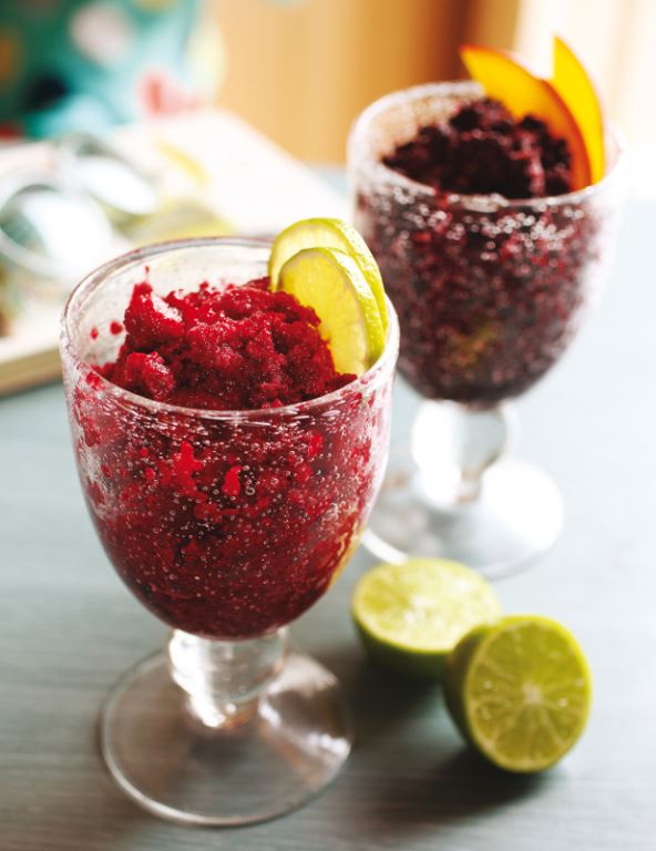 Voće, šećer i limun stavite u sjeckalicu (multipraktik) i sameljite u finu pastu. Voće mora biti smrznuto, iz zamrzivača. Ako sorbet ima pregrubu teksturu, možete ga vratiti u zamrzivač, a zatim opet samljeti te to ponoviti nekoliko puta da biste dobili masu sličniju sladoledu. Time razbijamo krupne kristale leda. Poslužite odmah u lijepim čašama.