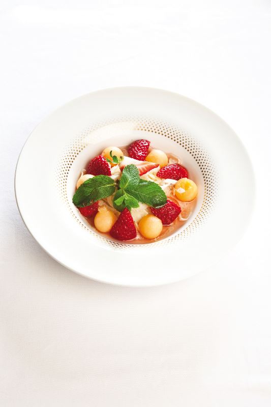 Komorač izrežemo te začinimo kuhanim šećernim lajterom, kuha se 10 dag šećera s 5 ml vode. U začinjeni komorač dodajemo Grand Marinier, očišćenu dinju i jagode koje lagano izmiješamo te poslužimo u dubokom tanjuru i ukrasimo listićima metvice.