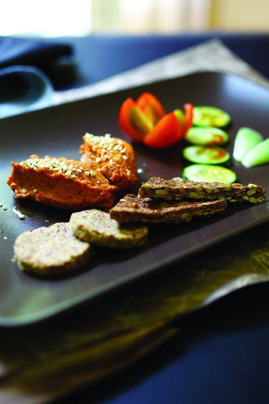 2 šalice oraha, 2 stabljike celera narezane na kockice, 1 crvena paprika, 1 ljutika ili ¼ slatkog luka, 1 žlica maslinova ulja, ½ žlice crvene slatke paprike u prahu, malo kajenskog papra po želji,