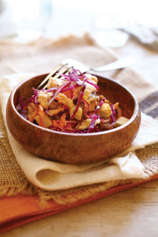 1 naribana mrkva, 1 stabljika celera narezana na kockice, 1 jabuka narezana na kockice, 1 šaka grožđica, ½ šalice oraha