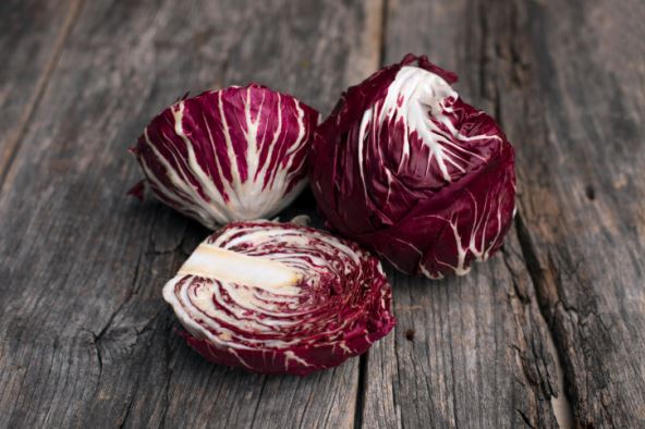 Krumpir skuhajte u kori. Kad je gotov, ogulite ga i narežite na ploške. Radič narežite na rezance. Sve stavite u zdjelu, začinite octom i uljem i dobro izmiješajte.