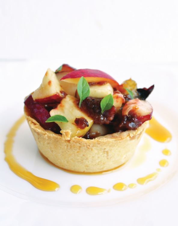 3. Prazne košarice pecite 12-15 minuta ili dok ne porumene. Ostavite da se potpuno ohlade u kalupu pa ih pažljivo vadite pomoću lopatice ili nožića, kako tijesto ne bi pucalo. Za punjenje očistite i nasjeckajte sezonsko voće (jednu ili više vrsta) te u zdjeli pomiješajte s ostalim sastojcima. Pustite da stoji oko pola sata pa svaku košaricu napunite nadjevom te prije posluživanja poškropite javorovim sirupom ili rižinim sladom. Uslast!