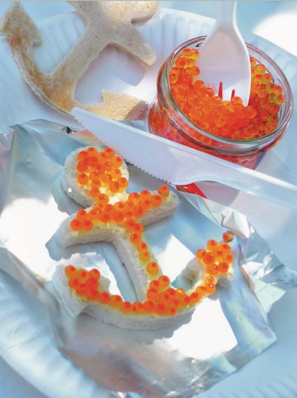 Kriške bijeloga tosta izrežite uz pomoć kalupića u obliku sidra, alternativno, oštrim nožem oblikujte sidro. Premažite tankim slojem maslaca, a zatim kavijarom. Jednakim načinom možete izrezati i dimljeni losos ili kriške sira pa ih dodati u originalni kanape.