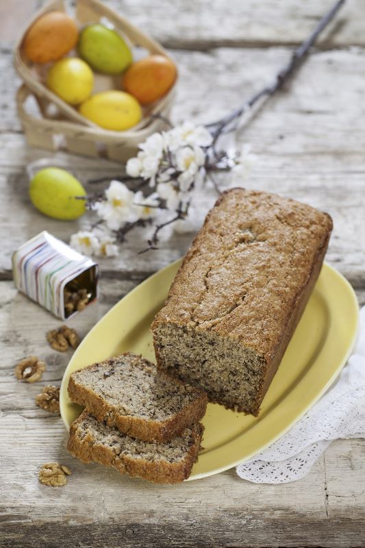 Pjenasto umutite meki margarin te postupno umiješajte smeđi šećer, vanilin šećer i jaje. Ogulite banane i zdrobite ih vilicom. Kašu od banana umiješajte u smjesu od margarina, šećera i jaja. Prosijte brašno s praškom za pecivo. Dodajte sol i krupicu. Ovu mješavinu, naizmjence s mlijekom, umijesite u smjesu margarina i banana. Na kraju dodajte orahe. Jednom žlicom margarina premažite kalup za kruh, dužine 29 cm, i stavite tijesto. Izravnajte mu površinu i pecite 45 minuta na 180 ˚C. Pečeni slatki kruh izvadite iz kalupa, omotajte ga kuhinjskom krpom i ostavite da se potpuno ohladi. Poslužite uz omiljeni pekmez ili med.