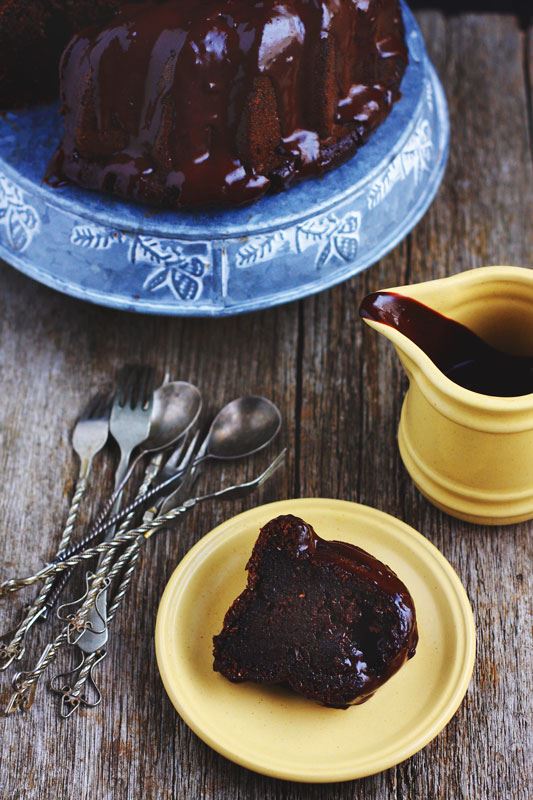 U vatrostalnoj posudi na pari rastopite čokoladu. U otopljenu čokoladu dodajte slatko vrhnje, mlijeko, maslac i sve dobro izmiješajte. Kada to napravite, maknite posudu s pare i prelijte preko kolača. Poslužite ohlađeno na sobnoj temperaturi.