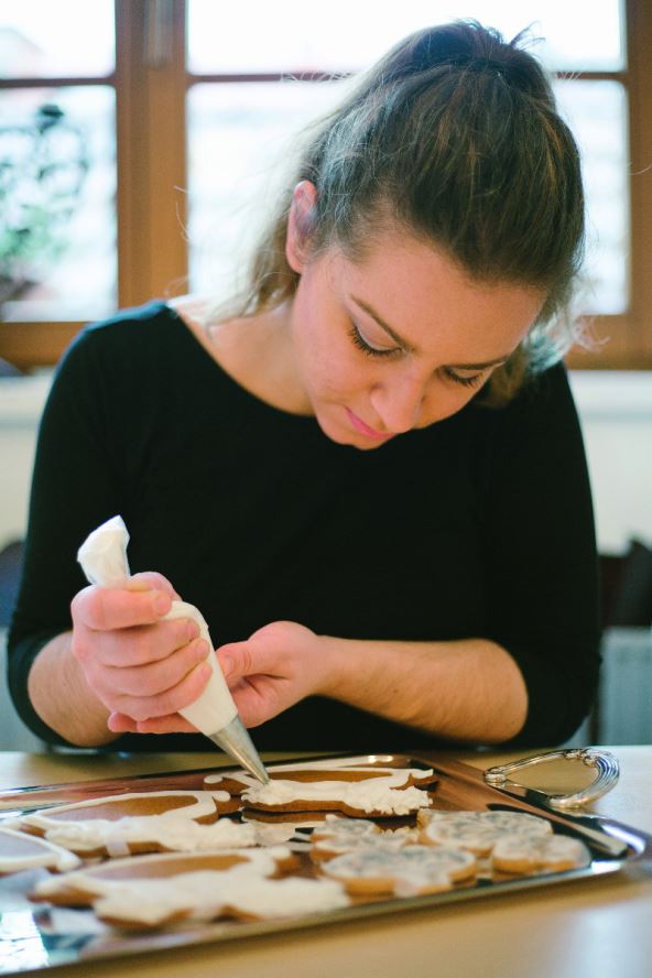 Glazuru po želji obojite prehrambenim bojama. Medenjake iscrtajte glazurom kojom ste napunili vrećicu za ukrašavanje i odrezali joj vrh tako da ima sitni otvor. Prvo iscrtajte rub medenjaka pa popunite njegovu površinu. Glazuru je najbolje ostaviti da se osuši preko noći na sobnoj temperaturi, nakon čega slijedi najzabavniji dio – ukrašavanje!