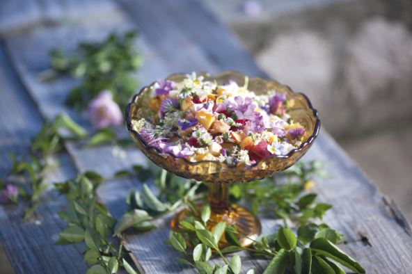 Vrlo jednostavan desert u kojem se latice ruže i cvjetovi bazge preliju medom i limunovim sokom. Po želji možete dodati i rastopljenu čokoladu ili kremu od rogača umjesto meda.