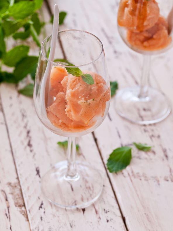 Dinju prerežite, očistite od koštica, ogulite te je narežite na kockice. Kockice dinje stavite u plastičnu posudu i zamrznite. Zamrznute kockice dinje ubacite u blender, dodajte agavin sirup, liker od limuna i mentu. Sve miješajte dok se ne pretvori u jednoličnu smjesu. Po želji poslužite odmah ili ostavite u zamrzivaču do posluživanja.