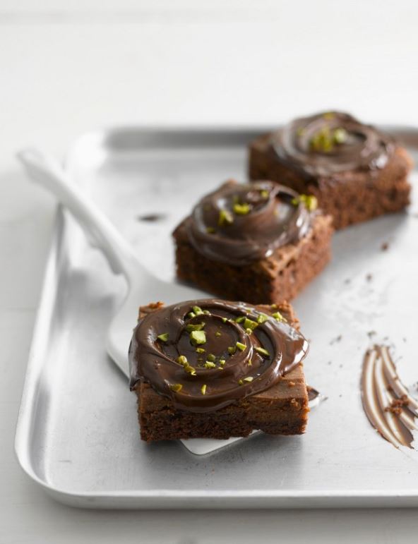 Pećnicu zagrijte na 180 stupnjeva. Kalup obložite papirom za pečenje. U veću zdjelu prosijte brašno s praškom za pecivo i kakaom. Dodajte smeđi šećer i dobro pomiješajte. Ulijte ulje i biljno mlijeko te kratko promiješajte. Smjesu ulijte u kalup i stavite u zagrijanu pećnicu. Pecite 35 do 40 minuta na 180 stupnjeva. Ohladite pa premažite kremom.