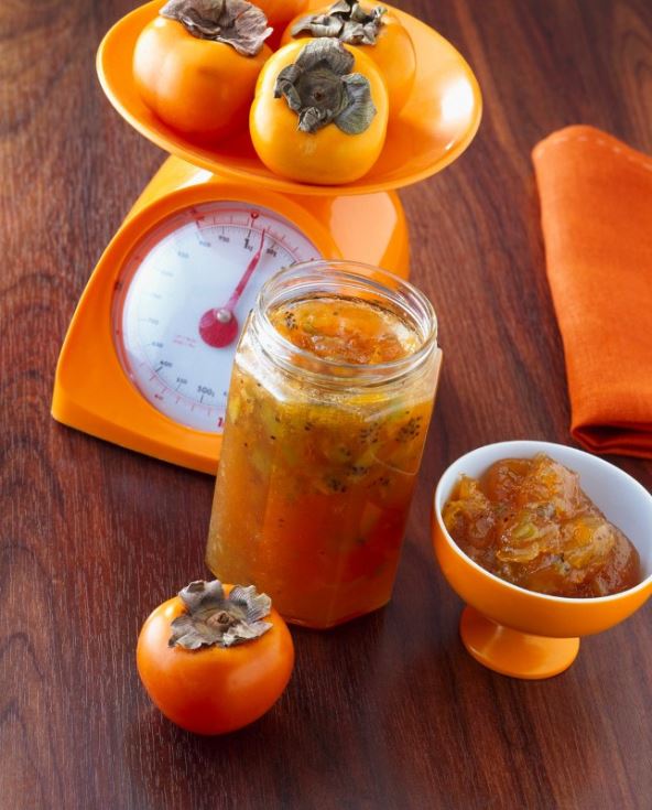 Očišćene datulje stavite u blender, prelijte vodom i smiksajte. Kakije očistite i ogulite pa ih zgnječite vilicom. Mandarine prerežite i iz njih iscijedite sok te ga ulijte u lonac. Dodajte mu agar-agar i promiješajte. Zatim dodajte zgnječeni kaki te smiksane datulje (želite li potpuno gladak džem, kaki smiksajte s datuljama). Pospite svježe naribanim đumbirom i cimetom, dodajte zvjezdasti anis te promiješajte. Stavite na srednje jaku vatru, a kad zakipi, vatru smanjite i uz miješanje nastavite kuhati oko 15 minuta, odnosno dok se smjesa ne zgusne. Ulijte u zagrijane sterilizirane staklenke i dobro zatvorite. Kad se ohladi, pohranite u hladnjak i što prije potrošite.