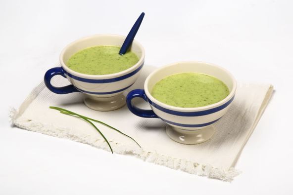 U posudi zakuhajte vodu pa stavite lišće koprive. Kuhajte 3-4 minute kuhačom pritišćući koprivu u vodi. Procijedite, dodajte 2 žlice sojinog ili zobenog vrhnja pa izmiksajte u pastu. Na ulju propirjajte sitno sjeckani mladi luk, dodajte oguljeni i sitno sjeckani batat pa pirjajte 3-4 minute. Dodajte prstohvat soli pa ulijte vodu i mlijeko. Kuhajte 10-ak minuta poklopljeno na laganoj vatri. Izmiksajte ručnim mikserom, dodajte pire od koprive pa ponovno zakuhajte juhu. Kad prokuha, po želji dodajte soli i papra pa ostavite da poklopljeno odstoji 2-3 minute.