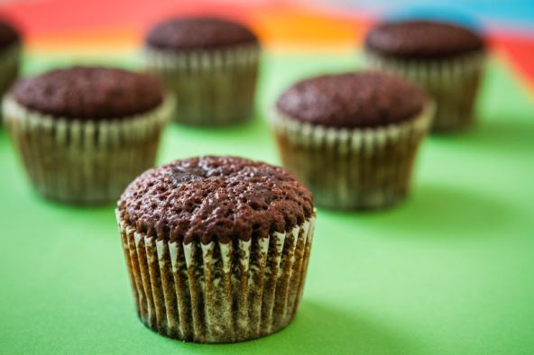 U kalup za muffine stavite papirnate košarice. Pećnicu zagrijte na 180 stupnjeva. U srednje velikoj zdjeli pomiješajte biljno mlijeko i jabučni ocat pa ostavite sa strane otprilike 5 minuta. Za to vrijeme u veću zdjelu ili posudu prosijte brašno s praškom za pecivo, kakaom i solju. Biljno mlijeko koje se od octa malo zgrušalo promiješajte pa dodajte smeđi šećer, crno pivo i ulje. Dobro promiješajte da se mješavina zapjeni, a šećer rastopi. Postupno ulijte u prosijano brašno s kakaom te promiješajte. Dobivenom smjesom napunite kalupiće tako da budu ispunjeni otprilike 2/3. Pecite ih 20 do 22 minute pa izvadite iz kalupa i ostavite da se ohlade na rešetki.