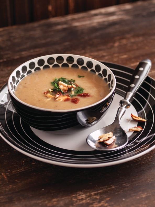 Kada cvjetača omekša, štapnim mikserom sve usitnite u gustu juhu. Doradite okus solju i paprom te još kratko prokuhajte.