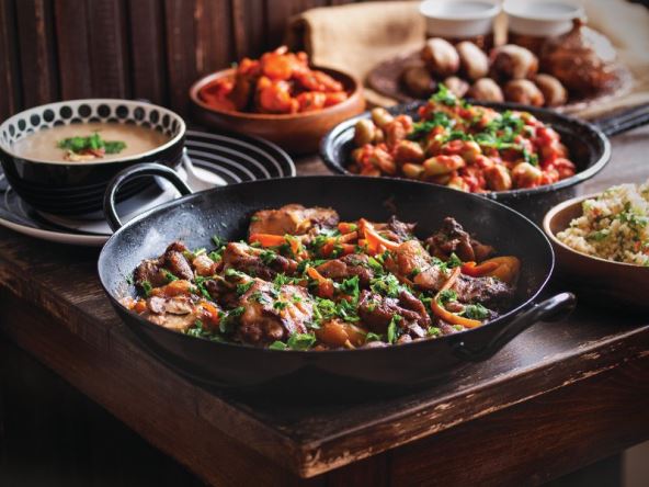 Kumin, korijandar i kim tostirajte na suhoj tavi, ali vrlo kratko, samo da zamirišu. Prebacite ih u mužar i usitnite. Maslinovo ulje zagrijte u dubljoj tavi pa na njemu prepržite luk, češnjak i suhe papričice. Pržite ih dok se dobro ne karameliziraju.
