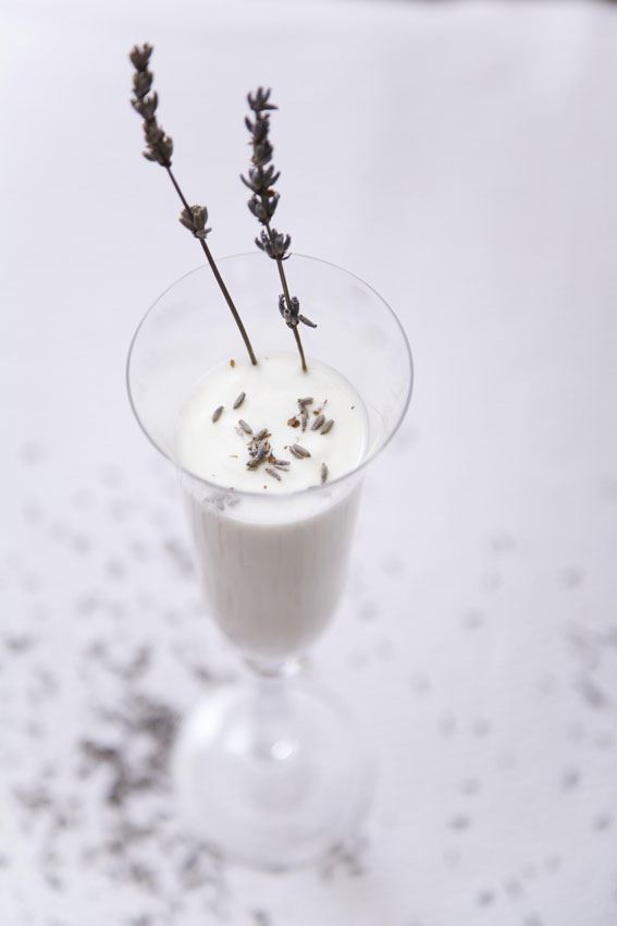Slatko vrhnje i mješavinu vrhnja i mlijeka ulijte u posudu za kuhanje s debelim dnom. U mješavinu dodajte lavandin cvijet (u „jajetu“ za čaj ili u filtar vrećici od gaze) i sve zajedno zagrijavajte oko pet minuta. Zatim izvadite lavandu. U posebnoj zdjeli zamutite žumanjke dok ne postanu pjenasti. U zdjelu sa žumanjcima polako, stalno miješajući pjenjačom, ulijte otprilike polovinu toplog vrhnja. Takvu smjesu, polako miješajući, vratite u posudu s ostatkom vrhnja i nastavite zagrijavati na vrlo niskoj temperaturi. Miješajte pjenjačom, otprilike 5 minuta. Ulijte toplu smjesu u zdjelu i u nju umiješajte med. Ohladite i zamrznite prema uputama proizvođača aparata za sladoled.