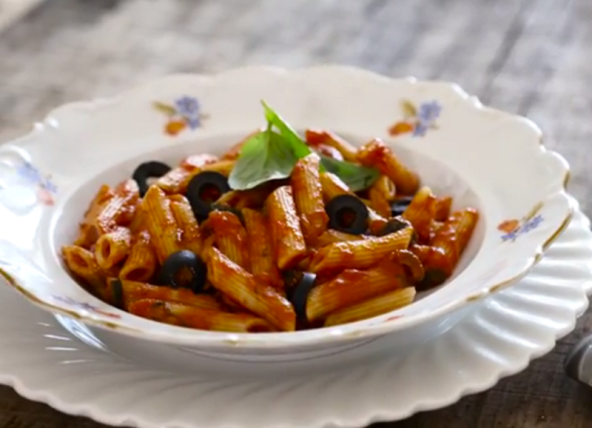 Narezati luk, mini rajčice, masline i peršin. Luk popržiti na maslinovu ulju, dodati zgnječeni češnjak i pasirane mini rajčice. U sve dodati peršin i masline te ubaciti par listova bosiljka. Paštu skuhati prema uputama. Kad je gotova, pomiješati je s umakom.