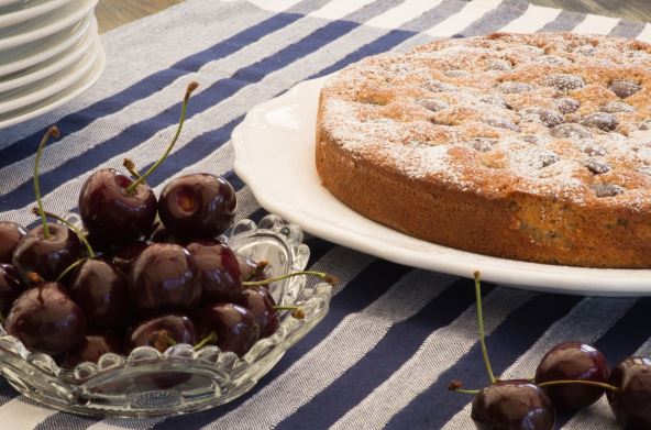 Mljeveni lan stavite u zdjelu i pomiješajte s 3 žlice vode. Ostavite da odstoji 10-ak minuta. Pećnicu zagrijte na 180 stupnjeva. Kad lan nabubri, dodajte mu smeđi šećer, bademe pomiješane s praškom za pecivo, biljno mlijeko, kokosovo ulje te limunovu koricu i sok. Kratko promiješajte pa umiješajte očišćene trešnje. Smjesu stavite u mali kalup (npr. okrugli promjera 18 cm) i pecite na 180 stupnjeva 15 do 18 minuta.