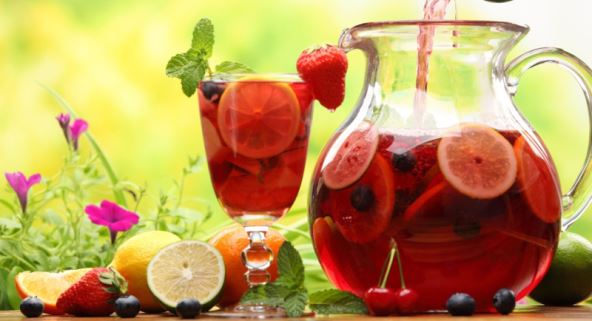 Sve sastojke osim mineralne vode stavite u vrč i ostavite najmanje nekoliko sati u hladnjaku da se okusi prožmu. Neposredno prije posluživanja ulijte mineralnu vodu te poslužite s ledom, ukrašeno listićima metvice.