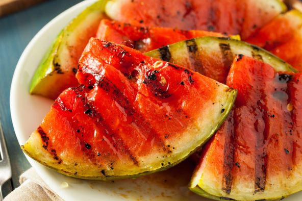 Prije pečenja na roštilju, lubenicu po dužini narežite na četvrtine, a zatim svaku četvrtinu na ploške debljine 3 cm. Ploške lubenice lagano pospite morskom solju i ostavite da odstoje 30-ak minuta. Potom ih isperite i posušite papirnatim ubrusom. Ako već niste, jako zagrijte roštilj. Komade lubenice s obje strane nauljite (upotrijebite li maslinovo ulje, dodatno ćete obogatiti okus). Ispecite ih na roštilju, po 2-3 minute sa svake strane, odnosno dok lubenica malo ne omekša te na njoj ostanu tragovi rešetke roštilja. Ako ne roštiljate, lubenicu možete ispeći i u pećnici, pod jako zagrijanim grillom, također 2-3 minute sa svake strane.