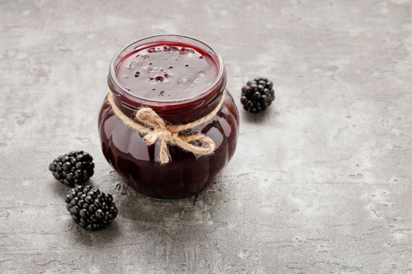Kupine stavite u lonac i pomiješajte sa šećerom, začinima i limunovim sokom. Kuhajte dok ne zakipi, a zatim maknite s vatre. Poklopite, ostavite da se ohladi te potom držite na hladnome najmanje 8 sati. Prije ponovnog kuhanja džema sterilizirajte staklenke tako da ih ostavite 20 minuta u pećnici na 130 °C ili prokuhate u kipućoj vodi. Kupine vratite na vatru i ponovno zagrijte do vrenja. Ulijte vino i kuhajte još 5 minuta. Vrući džem ulijte u tople staklenke. Dobro ih zatvorite i ostavite da se ohlade. Na isti način možete napraviti džem od borovnica ili mješavine bobica.